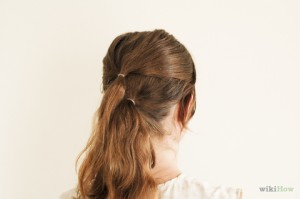 2 Séparez vos cheveux au milieu. Laissez les cheveux de côté peignés en vrac et tirer les cheveux en arrière dans une queue-de-cheval basse, en utilisant un élastique.